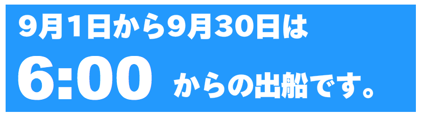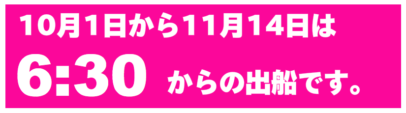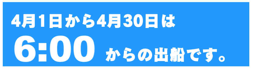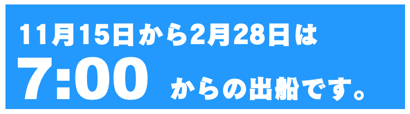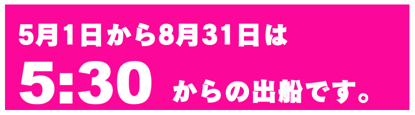 出船を30分遅らせたり、8時からの出船など、出船時間の変更ができます。事前にお知らせをお願い致します。